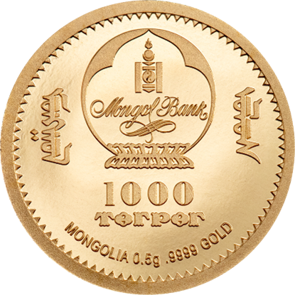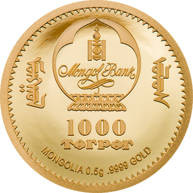 Зоосны мэдээлэл: 1’000 төгрөгийн нэрлэсэн үнэтэй, 0.5 гр жинтэй, 999.9 сорьцтой алтаар үйлдвэрлэгдсэн, 11 мм хэмжээтэй франчайз дурсгалын зоос.